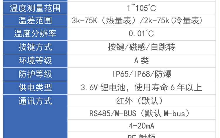 通訊方式:紅外(默認)/RS485/M-BUS(默認M-bus)/4-20mA/RF射頻/GPRS通訊