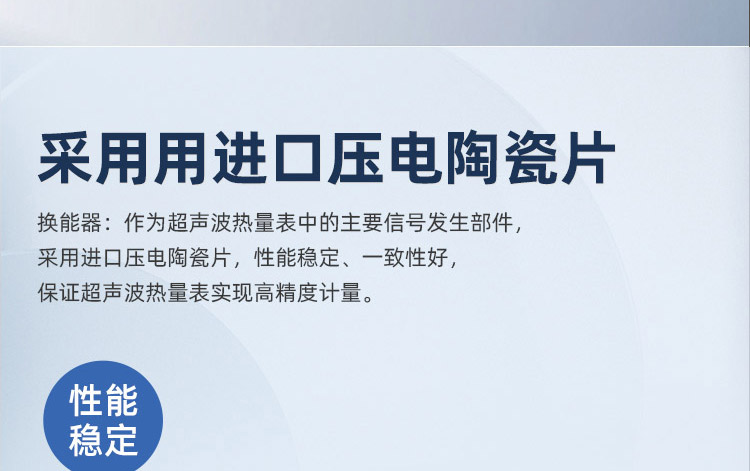 1.精確計量:采用進口壓電陶瓷換能器,性能穩定、一致性好,保證超聲波熱量表實現高精度計量