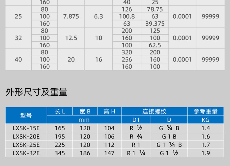 公稱直徑:DN15, DN20, DN25, DN32, DN40