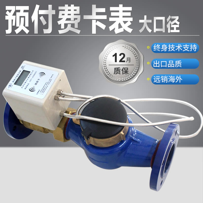 大口徑預付費冷水水表是以帶有發訊裝置的冷水水表為計量基表,以射頻卡為信息載體,加裝控制箱和電控閥組成的一種具有結算功能的水量計量儀表。