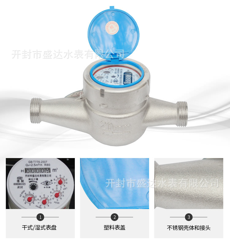 傳統(tǒng)水表的內(nèi)部結(jié)構(gòu)從外向里可分為殼體、套筒、內(nèi)芯三大件。殼體是生鐵鑄成的,水從進(jìn)水口出來(lái)之后通過(guò)殼體的下部環(huán)形空間,這里叫做“下環(huán)室”。在這個(gè)環(huán)形空間的上面有“上環(huán)室”和出水口相通。套筒的底部有個(gè)帶有小孔的過(guò)濾網(wǎng),濾出水中的雜物。套筒側(cè)面有上下兩排圓孔,孔的位置恰好與殼體的上下環(huán)室對(duì)著,顯然,下排是進(jìn)水孔,上排是出水孔。特別值得注意的是,這兩排孔都是沿圓的切線(xiàn)方向斜著打的。注意上下兩排孔的方向相反。水從下排孔沿切線(xiàn)方向流進(jìn)去,勢(shì)必形成旋轉(zhuǎn)的水流,這對(duì)于水表的工作是十分重要的。內(nèi)芯分為上、中、下三層,從玻璃窗看到的是上層,只有指針和刻度盤(pán)。其實(shí)*關(guān)鍵的是下層,這里面有個(gè)塑料輪,輪邊上有許多塑料葉片,叫做“葉輪”。
