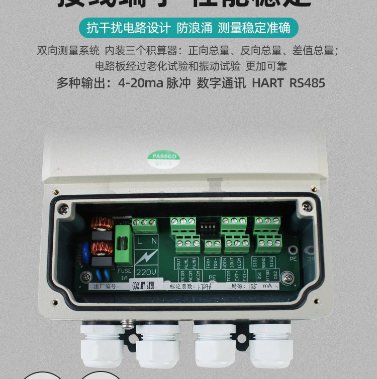 4.智能顯示與輸出:液晶轉(zhuǎn)換器清晰顯示累積流量、瞬時(shí)流量等參數(shù);支持4-20mA、脈沖、RS485等多種信號(hào)輸出。
