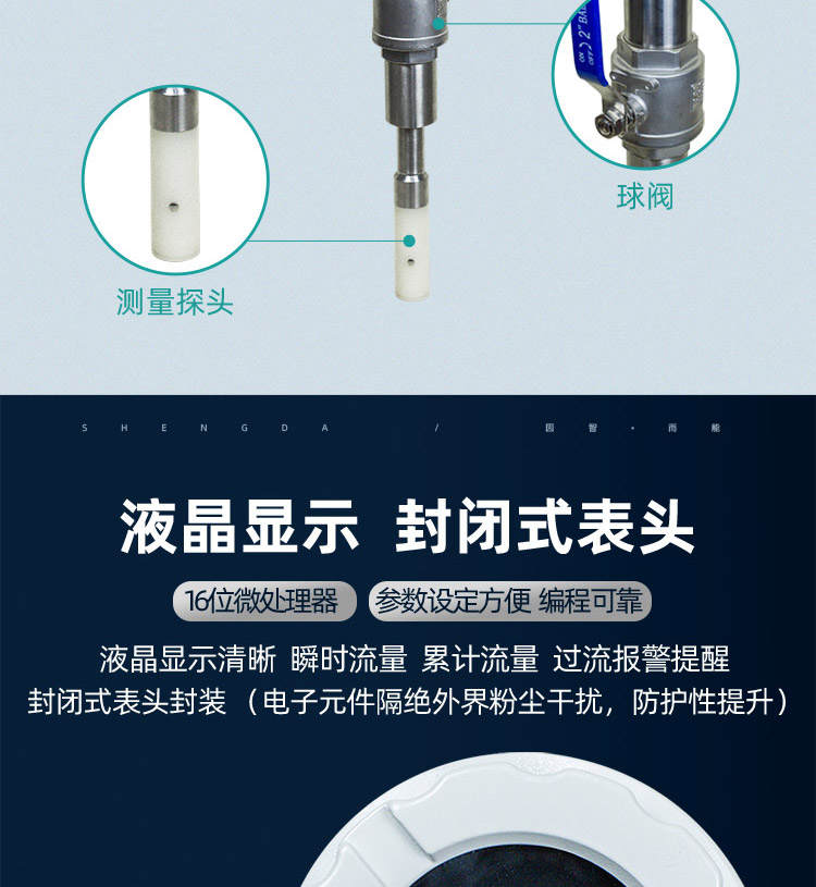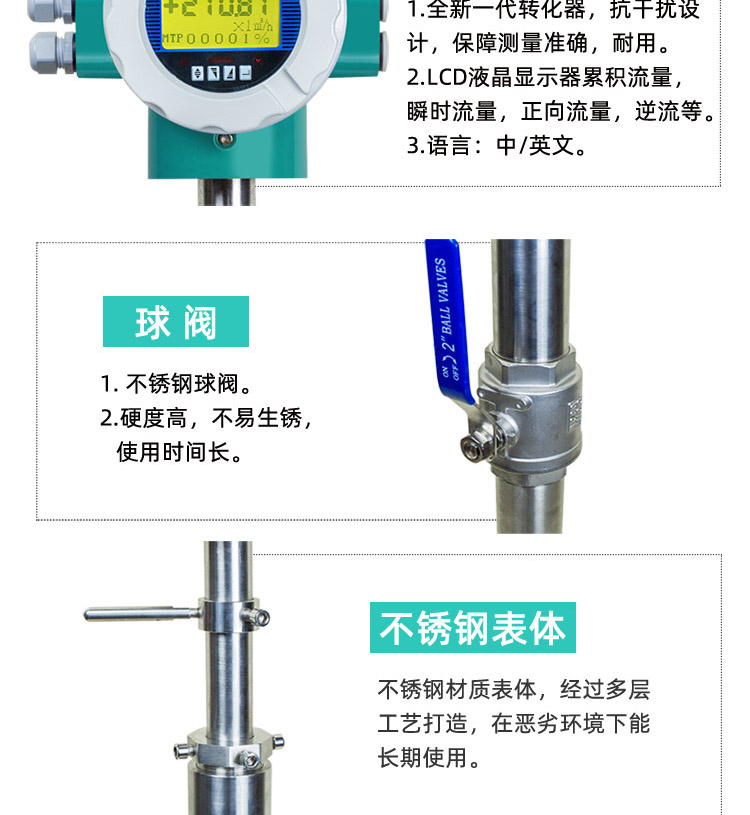 5.智能顯示功能:LCD液晶顯示器清晰顯示累積流量、瞬時(shí)流量等參數(shù),支持中英文界面