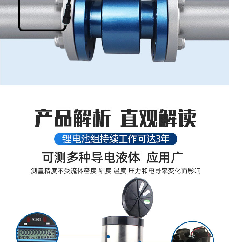 NB-IoT電磁流量計,鋰電電磁流量計,電池供電電磁流量計,NB遠傳一體鋰電電磁流量計是在智能一體鋰電電磁流量計基礎上集成NB-IoT通訊模塊的新型儀表